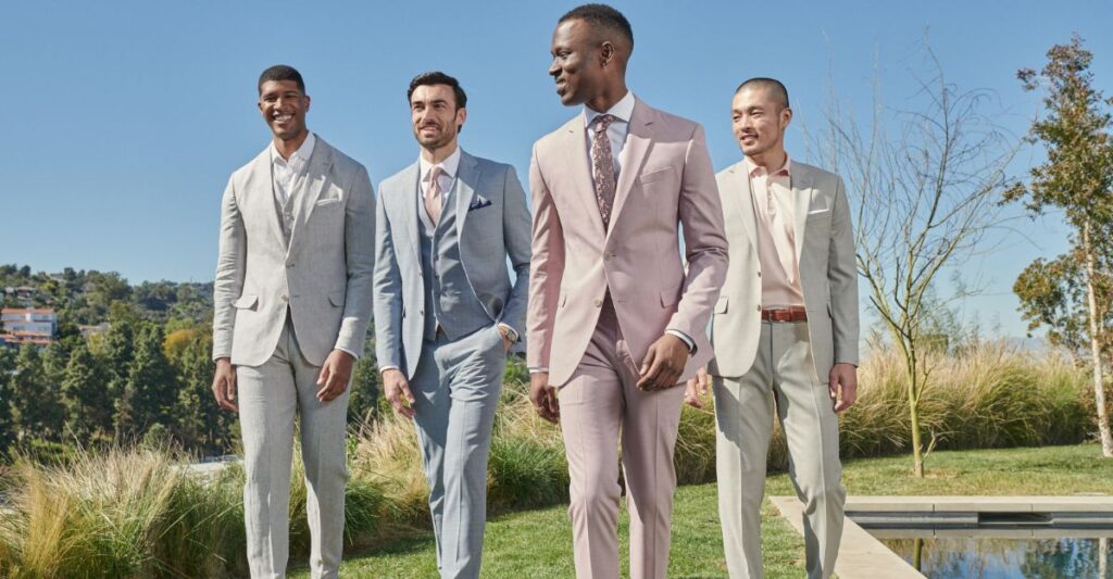 - Linen or cotton suits in light shades
